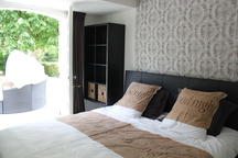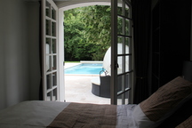 U kan kiezen tussen een slaapkamer met directe toegang naar het zwembad ofwel directe toegang tot de badkamer ofwel een kamer met een stapelbed en een eenpersoonsbed.