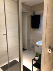 - Een volledige ingerichte badkamer met douche, bidet, wastafel en bubbelbad